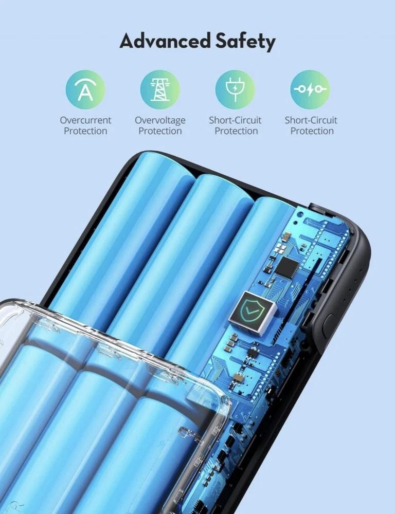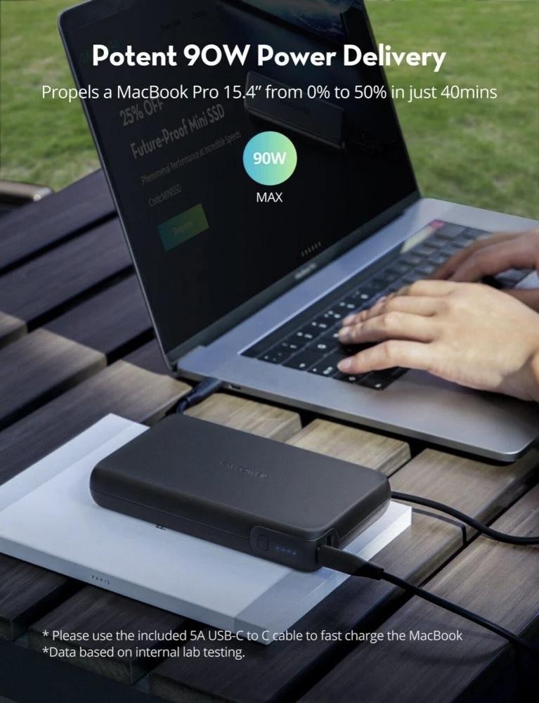 تحتوي البطارية على منفذين لشحن جميع الأجهزة التي تعمل بنظام USB تقريبًا بما في ذلك أجهزة الكمبيوتر المحمولة والأجهزة اللوحية والهواتف الذكية والمزيد.