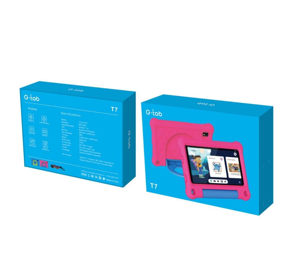 جهاز لوحي للأطفال جي تابT7 ، شاشة 7 بوصات، يدعم واي فاي ، اندرويد 14 ، بطارية 3000 مللي أمبير ، سعة تخزين 64 جيجا بايت ، تطبيق تعليمي للأطفال وألعاب مميزة ، التحكم الأبوي