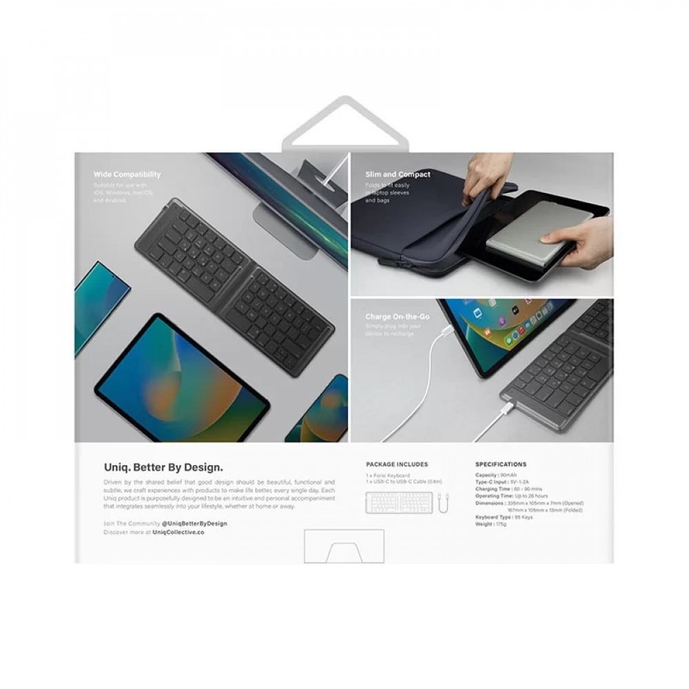 يونيك فوريو لوحة مفاتيح بلوتوث قابلة للطي عربي - اسود
