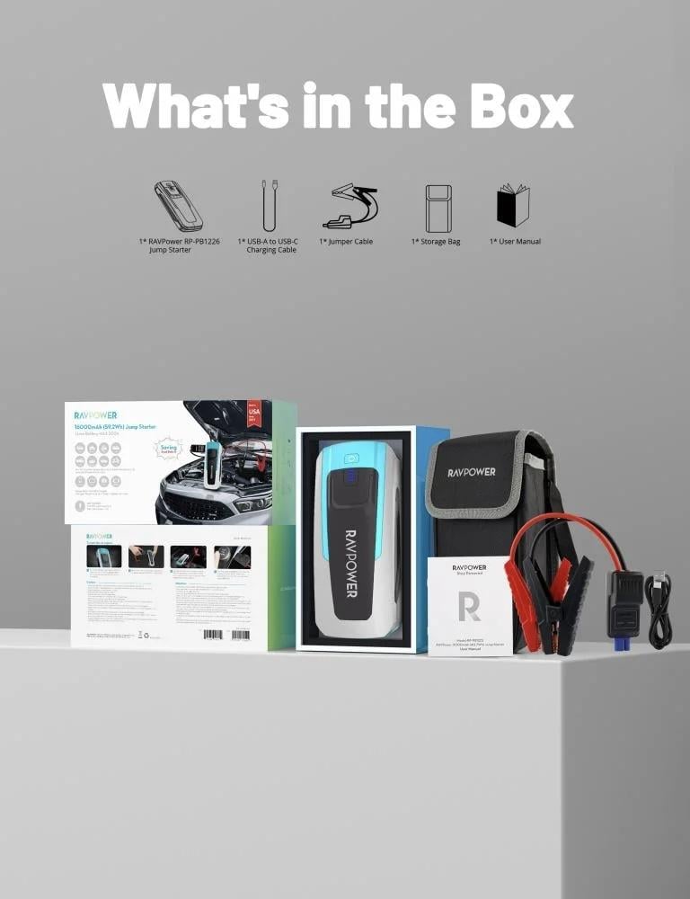 مشغل سيارة وبطارية راف باور بسعة 16000 ملي امبير بقوة 59.2 واط